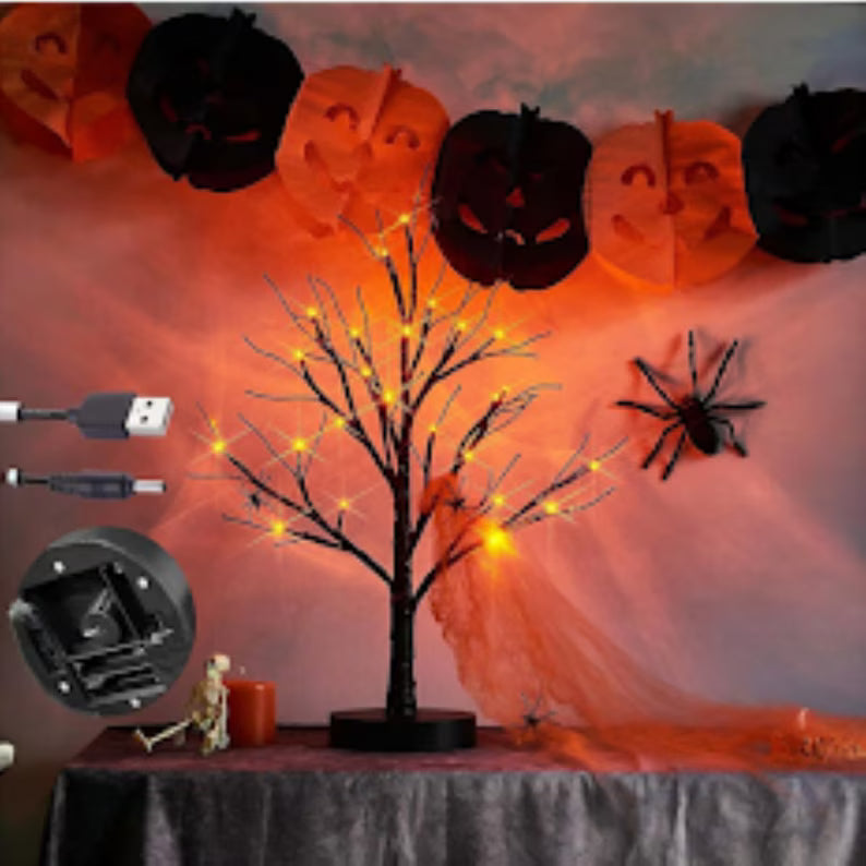 Add a warm, festive glow to your home this season with the 24” LED Orange Light Tree Lamp. Perfect for Halloween and fall décor, this battery-operated lamp brings a cozy, enchanting ambiance to any space. Its vibrant orange LED lights create a stunning centerpiece for indoor or outdoor settings.