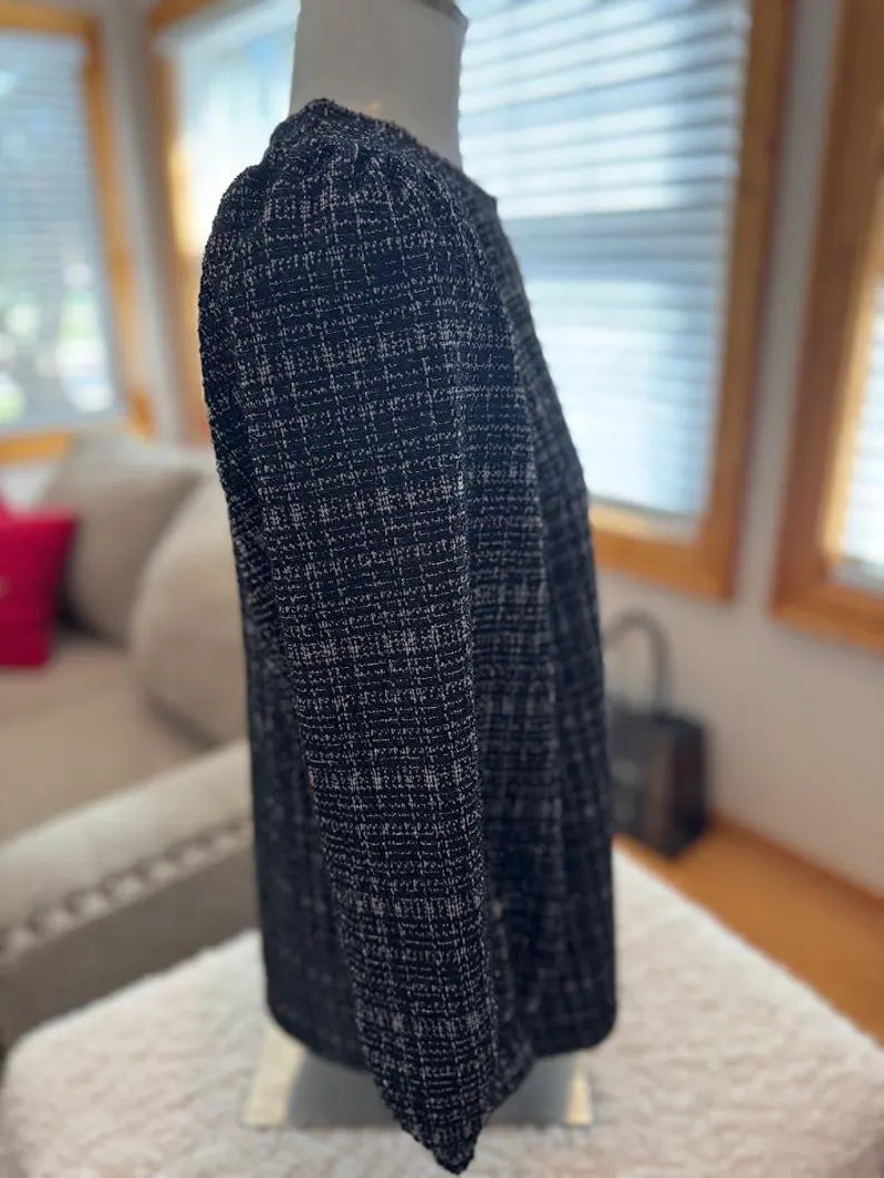 Anne Klein Women’s Black, White & Metallic Long Sleeve Top – Size Small – Hand Wash Only