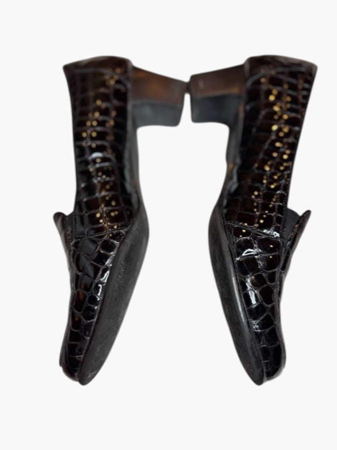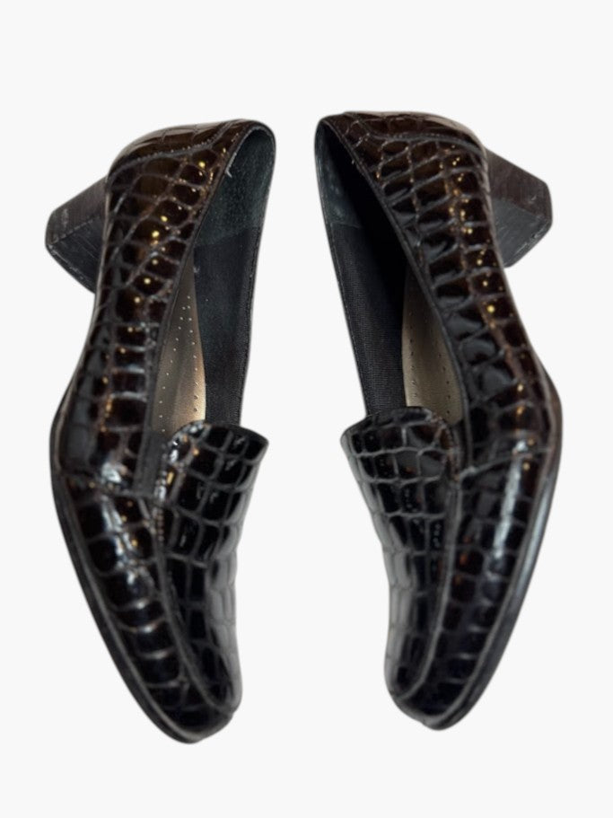 Black Croc-Embossed Loafers – 2" Heel Comfort Slip-On Shoes (Size 7)