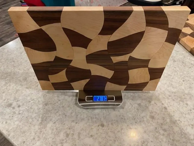 Add a bold twist to your kitchen with this handmade drunken cutting board, crafted from premium maple and black walnut hardwoods. The flowing, wavy edges give it the iconic "drunken" look—making each board a functional work of art.