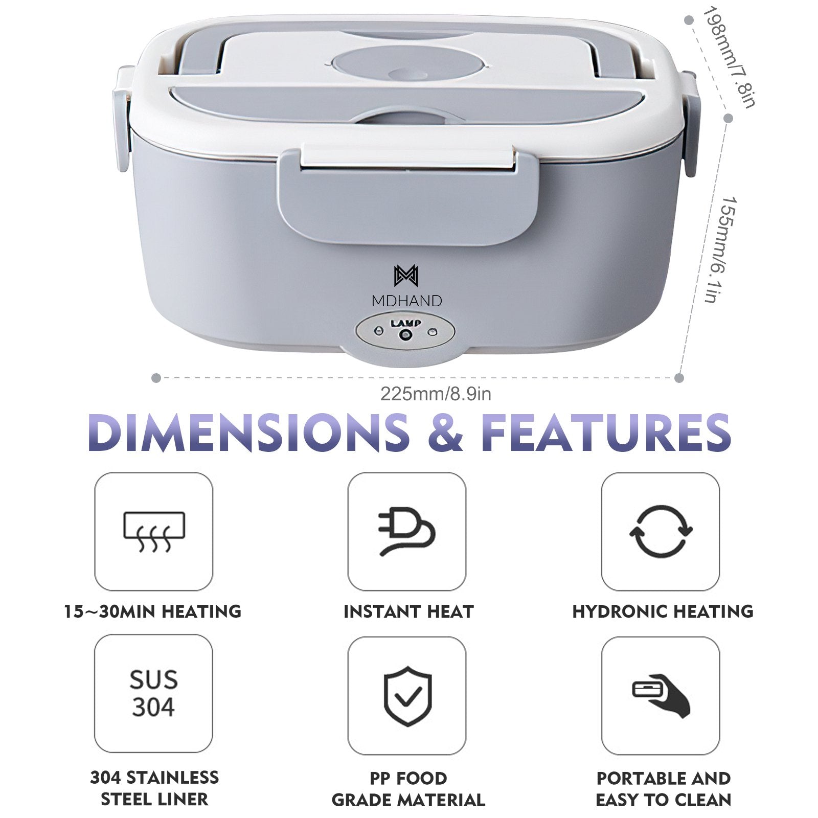 MDHAND Electric Lunch Box – Portable Self-Heating Food Warmer 110V/12V/24V for Work, Car & Outdoors | New with Lunch Bag