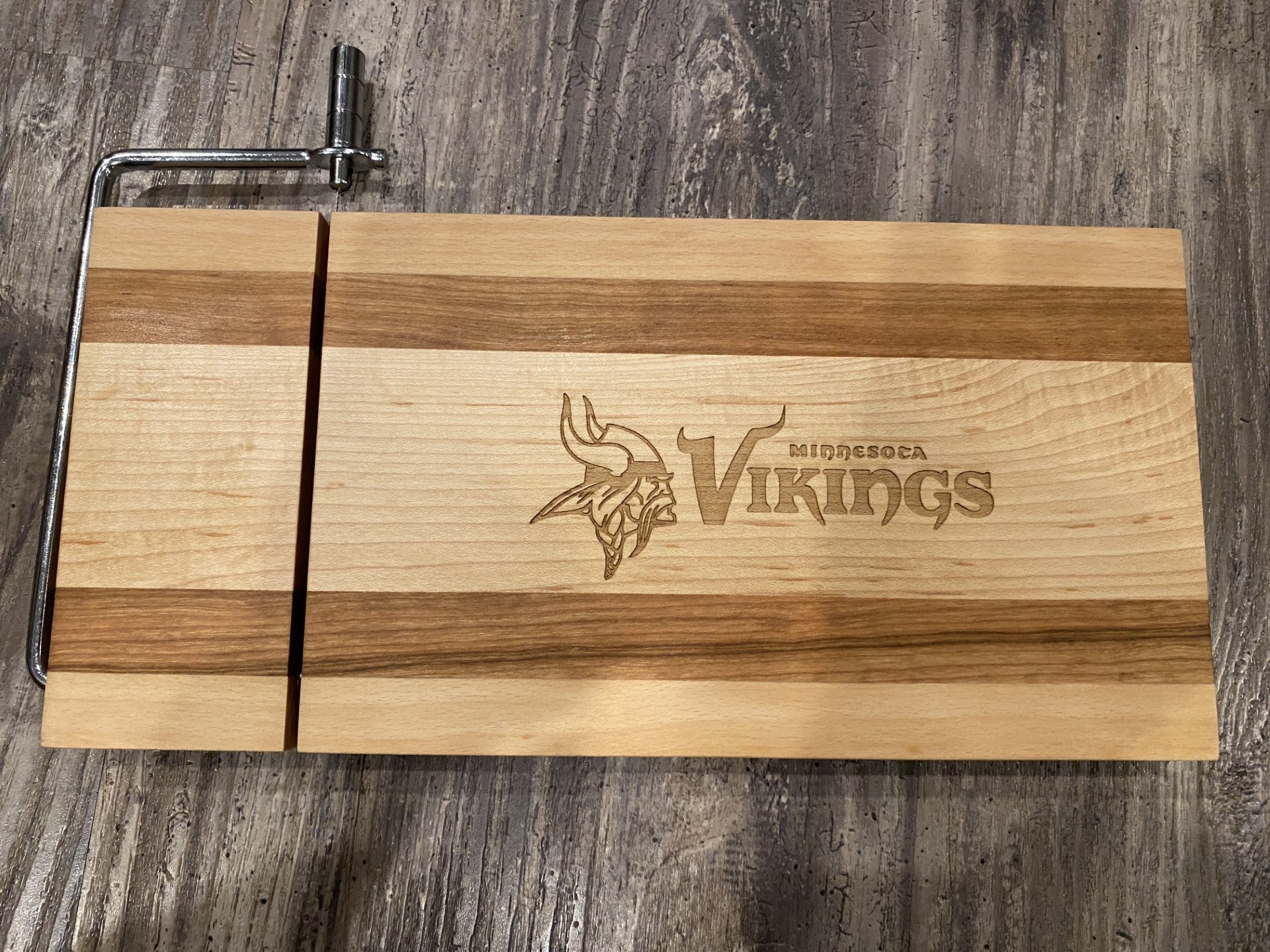 Minnesota Vikings Engraved Solid Wood Cheese Slicer Board – Maple & Cherry – 7.5x12.5 07.30.13