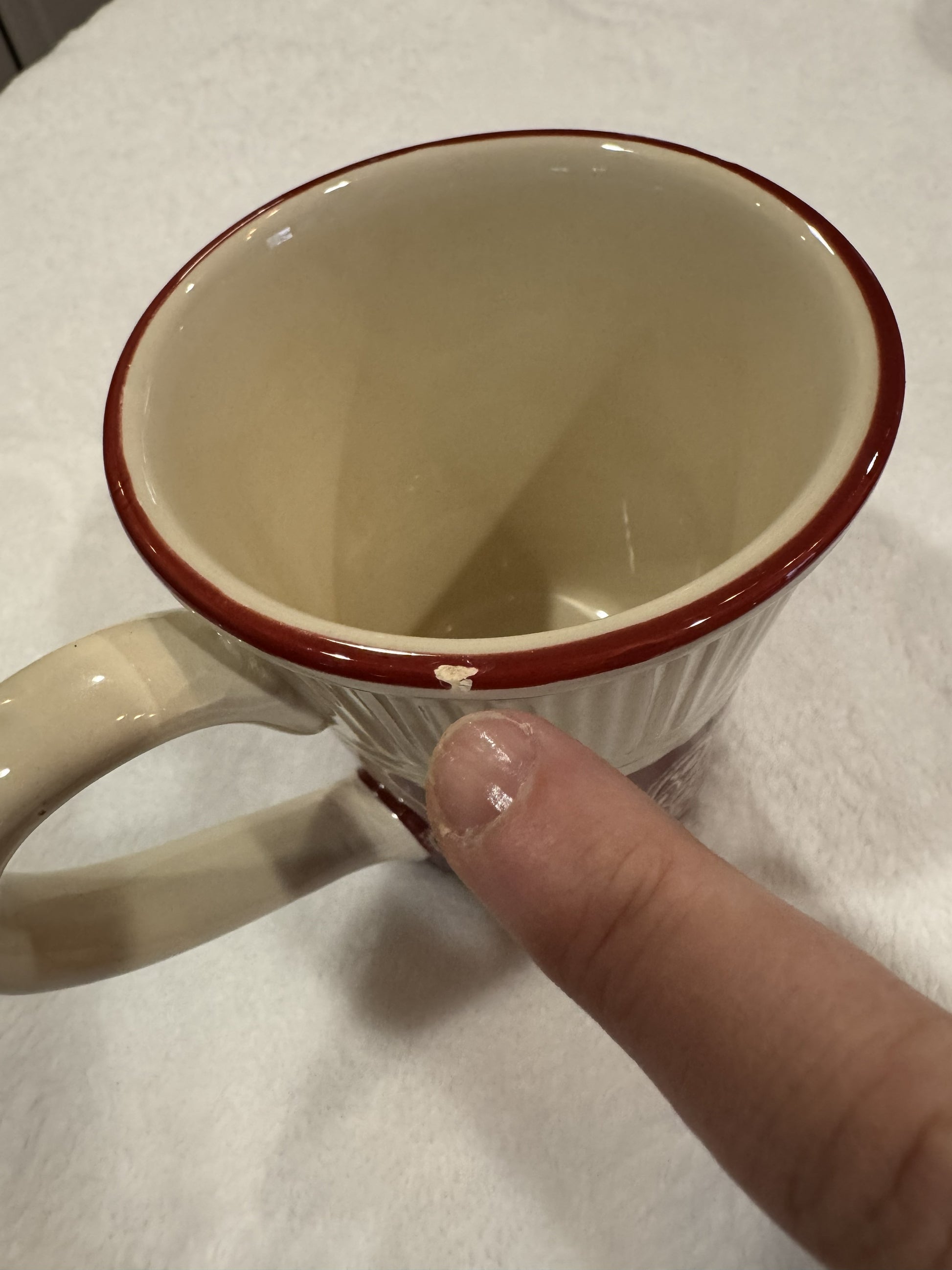 Light rim chips on several plates and one mug (all photographed). No cracks. Fully functional. Price reflects these flaws.