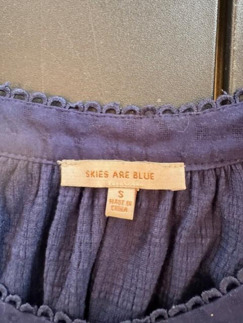 Stay chic and cool this summer with our Navy Blue Women's Blouse in Size Small. This casual button-down top is the perfect addition to your wardrobe. Made from lightweight and breathable cotton, this summer shirt for women is a must-have for those hot days. Stand out in style with this versatile and comfortable blouse!
